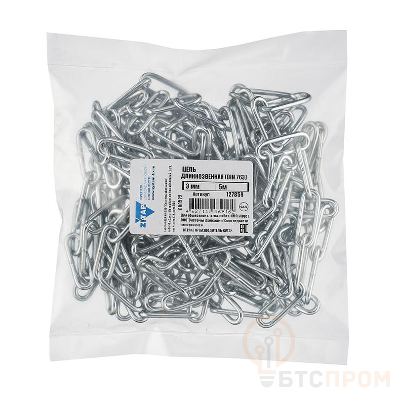 Область применения: применяется в строительстве и быту для крепления неответственных конструкций (подвески, растяжки и пр.). Не предназначена для грузоподъемных работ и выдерживания ударных нагрузок. Материал: углеродистая сталь с антикоррозионным цинковым покрытием. Особенности: цепь имеет малый коэффициент растяжения и большую степень свободы, ограниченную одним звеном. За счет большой длины звена можно легко отрегулировать цепь по длине и сделать петлю методом звено в звено. Размер цепи соответствует диаметру поперечного сечения проволоки, применяемой при вязке.