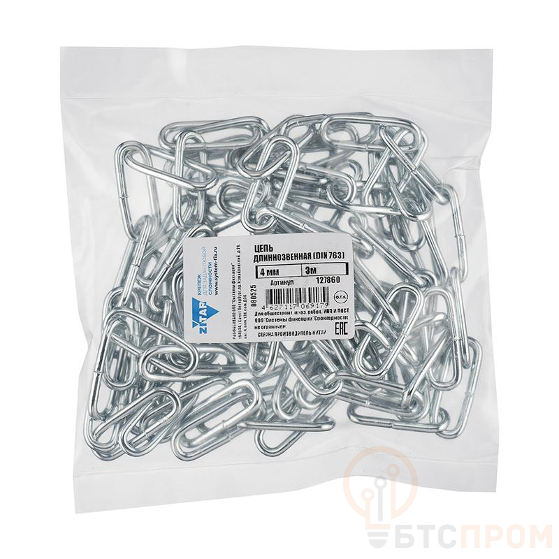 Область применения: применяется в строительстве и быту для крепления неответственных конструкций (подвески, растяжки и пр.). Не предназначена для грузоподъемных работ и выдерживания ударных нагрузок. Материал: углеродистая сталь с антикоррозионным цинковым покрытием. Особенности: цепь имеет малый коэффициент растяжения и большую степень свободы, ограниченную одним звеном. За счет большой длины звена можно легко отрегулировать цепь по длине и сделать петлю методом звено в звено. Размер цепи соответствует диаметру поперечного сечения проволоки, применяемой при вязке.