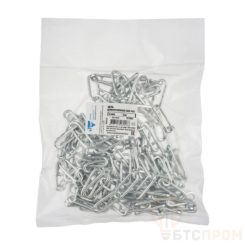 Область применения: применяется в строительстве и быту для крепления неответственных конструкций (подвески, растяжки и пр.). Не предназначена для грузоподъемных работ и выдерживания ударных нагрузок. Материал: углеродистая сталь с антикоррозионным цинковым покрытием. Особенности: цепь имеет малый коэффициент растяжения и большую степень свободы, ограниченную одним звеном. За счет большой длины звена можно легко отрегулировать цепь по длине и сделать петлю методом звено в звено. Размер цепи соответствует диаметру поперечного сечения проволоки, применяемой при вязке.