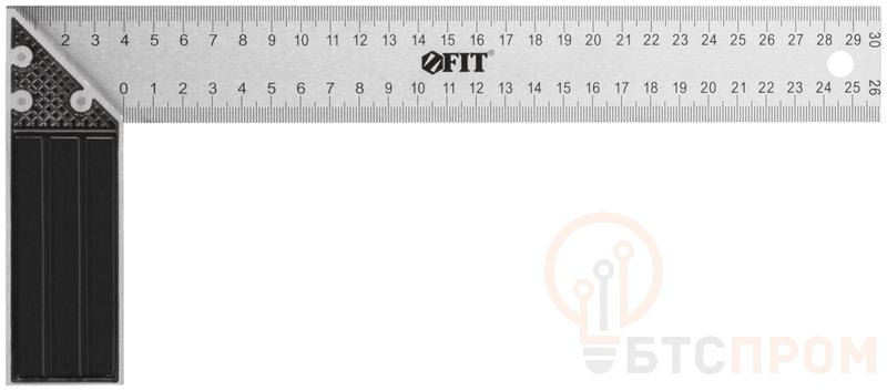 Угольник столярный FIT IT предназначен для проверки углов 90 и 45 градусов при выполнении разметочных работ. Двусторонняя рифленая гравированная износостойкая метрическая шкала способствует повышению качества работы. Фрезеровка рукоятки обеспечивает точность угла 1,0 мм/м. Линейка из нержавеющей стали с толщиной 1,0 мм обладает высокой жесткостью и износостойкостью. Литое алюминиевое основание с дополнительным ребрами жесткости имеет малый вес в сочетании с высокой прочностью. Трехточечное крепление полотна с основанием способствует избежанию люфтов. Отверстие в линейке позволяет хранить инструмент в подвешенном положении.
