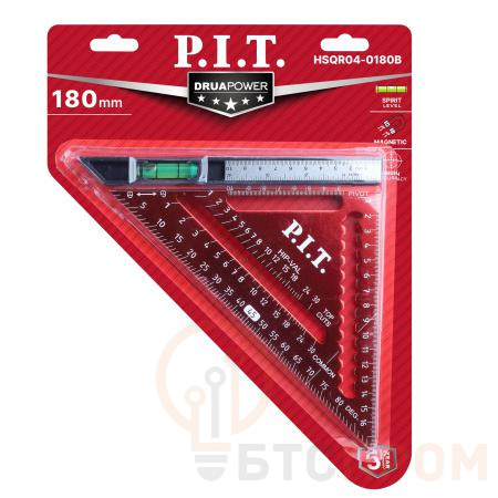 Угольник Свенсона метрический плотницкий с пузырьковым уровнем HSQR04-0180B (180мм магнит) P.I.T. HSQR04-0180B