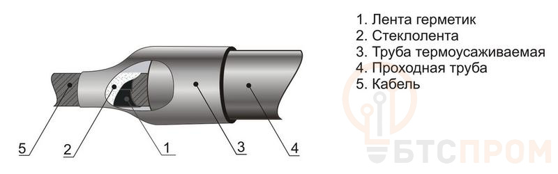 Изделие имеет монтажный диаметр 210 мм и посадочный диаметр 55 мм, что позволяет герметизировать пучки кабелей с суммарным диаметром от 40 до 55 мм. При нагреве термоусаживаемая муфта плотно обжимает кабели, создавая надежный барьер, устойчивый к механическим воздействиям, вибрации и агрессивным средам.