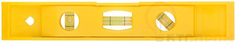 Строительный пластиковый уровень ‘’Торпедо’’ КУРС с 3 глазками предназначен для определения соответствия поверхностей горизонтальным и вертикальным плоскостям, и поверхностей расположенных под углом 45 градусов. Магниты, встроенные в базу, надежно фиксируют инструмент на металлических поверхностях, руки при этом остаются свободными. Отверстие в корпусе уровня дает возможность хранить инструмент в подвешенном положении.