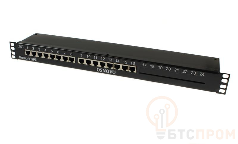 Устройство грозозащиты SP-IP16/1000PR 1U для локал. вычислит. сети на 16 портов (скорость до 1000Мб/с) с защит. линий PoE OSNOVO 14276