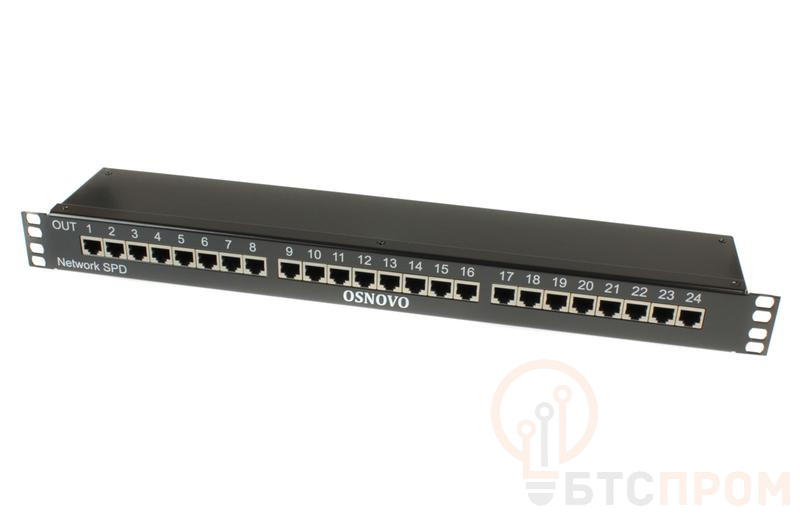 Устройство грозозащиты SP-IP24/1000R для локал. вычислит. сети (скорость до 1000Мбит/с) на 24 порта OSNOVO 14278