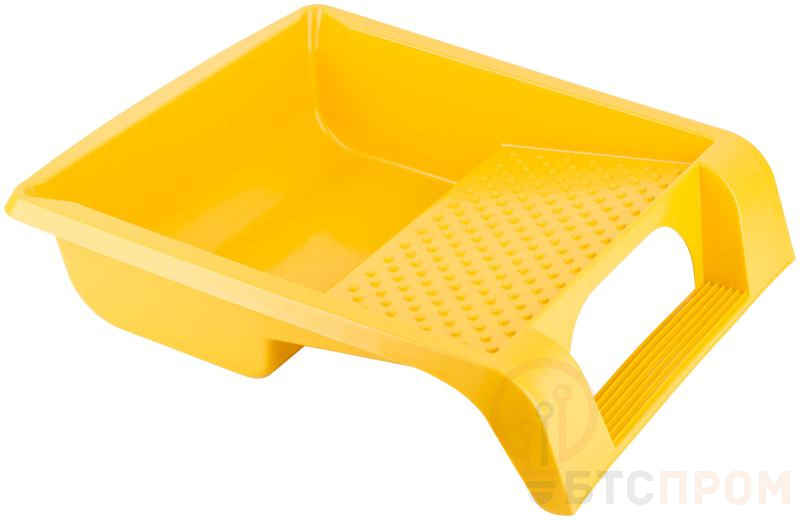Для равномерного нанесения краски на валик. Легко очищается от старой краски. Конструкция включает в себя наличие «педали», для возможности удерживания ванночки ногой и предотвращения ее передвижения во время раскатки валика. Материал: пластик.