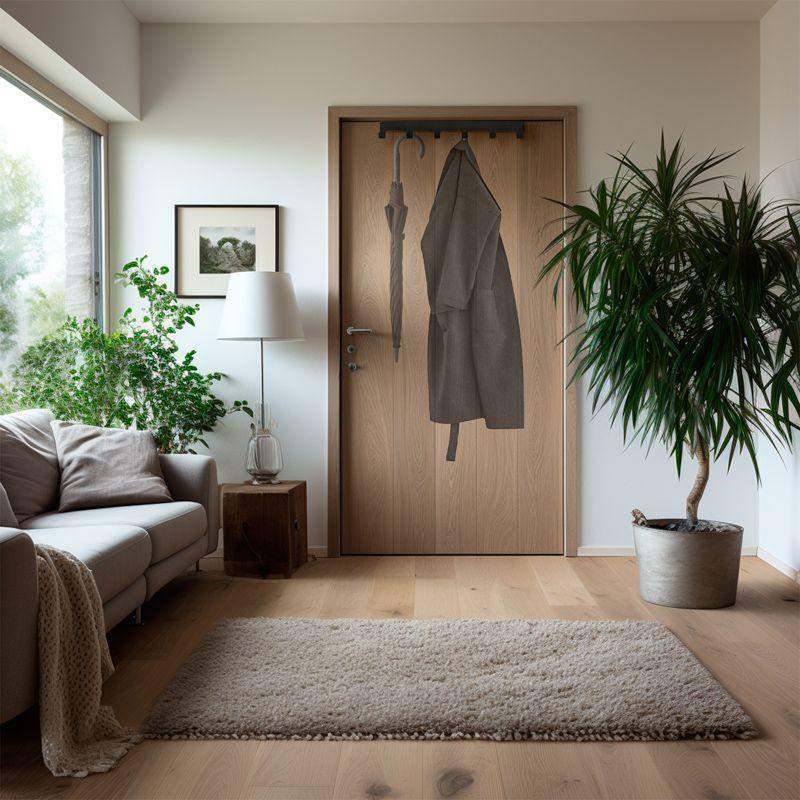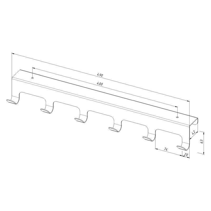 Вешалка навесная на дверь предназначена для хранения одежды или любых других вещей. Имеет компактные размеры, экономит пространство и обеспечивает быстрый доступ к предметам. Изделие предусматривает возможность размещения повседневной одежды, курток, сумок и т.д. Вешалка совместима со стандартными дверьми, максимальная ширина которых не превышает 45 мм. Установка осуществляется без крепежа, так как технически проработанная конструкция не позволит вешалке слететь с двери. В конструкции предусмотрены отверстия, которые позволяют в случае необходимости надежно прикрутить изделие сверху двери. Вешалка оснащена шестью крючками. Рекомендованная нагрузка на один крючок не должна превышать 2,5 кг. Порошковая покраска, нанесенная на поверхность вешалки, устойчива к механическим повреждениям и обеспечивает равномерный цвет изделия. Материал изготовления – сталь. Цвет – черный.