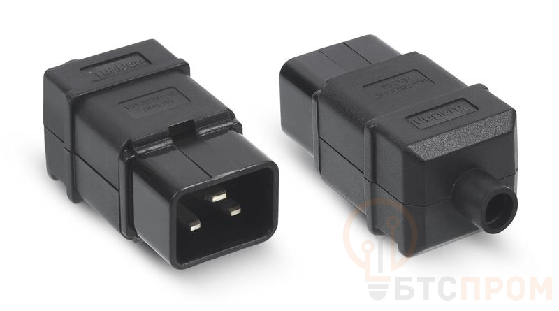 Сфера применения включает серверные стойки, системы бесперебойного питания (ИБП), мощные сварочные аппараты, промышленное оборудование и другие устройства, требующие подключения к сети с высоким энергопотреблением. Вилка соответствует международным стандартам безопасности.