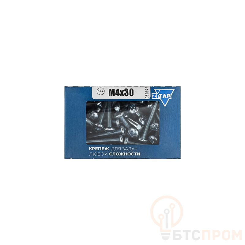 Винт с полукруглой головкой М4х30 DIN 7985 оцинк. (уп.100шт) Tech-Krep/Zitar 105221 фото в каталоге от BTSprom.by