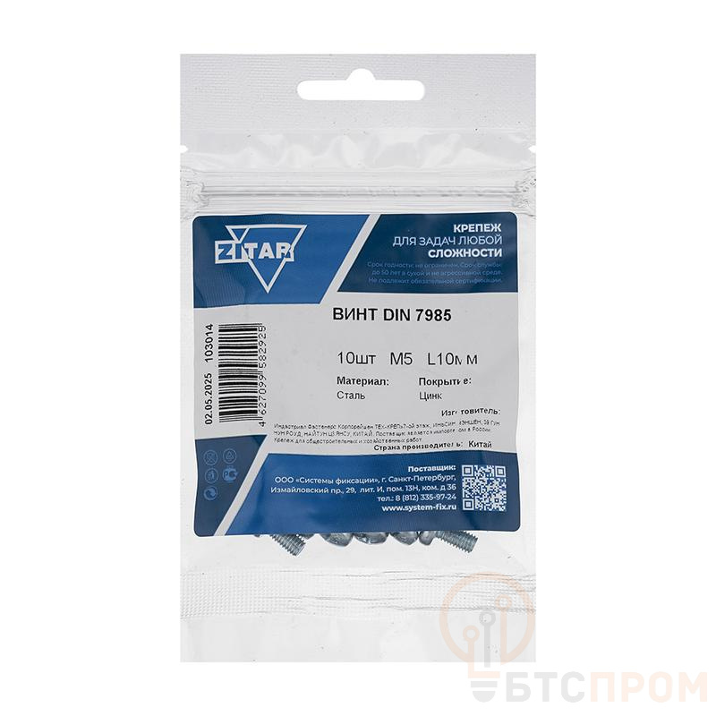 Винт с полукруглой головкой М5х10 DIN 7985 оцинк. (уп.10шт) Tech-Krep/Zitar 103014 фото в каталоге от BTSprom.by