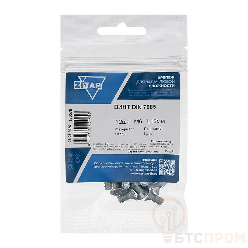 Винт с полукруглой головкой М6х12 DIN 7985 оцинк. (уп.12шт) Tech-Krep/Zitar 126579 фото в каталоге от BTSprom.by