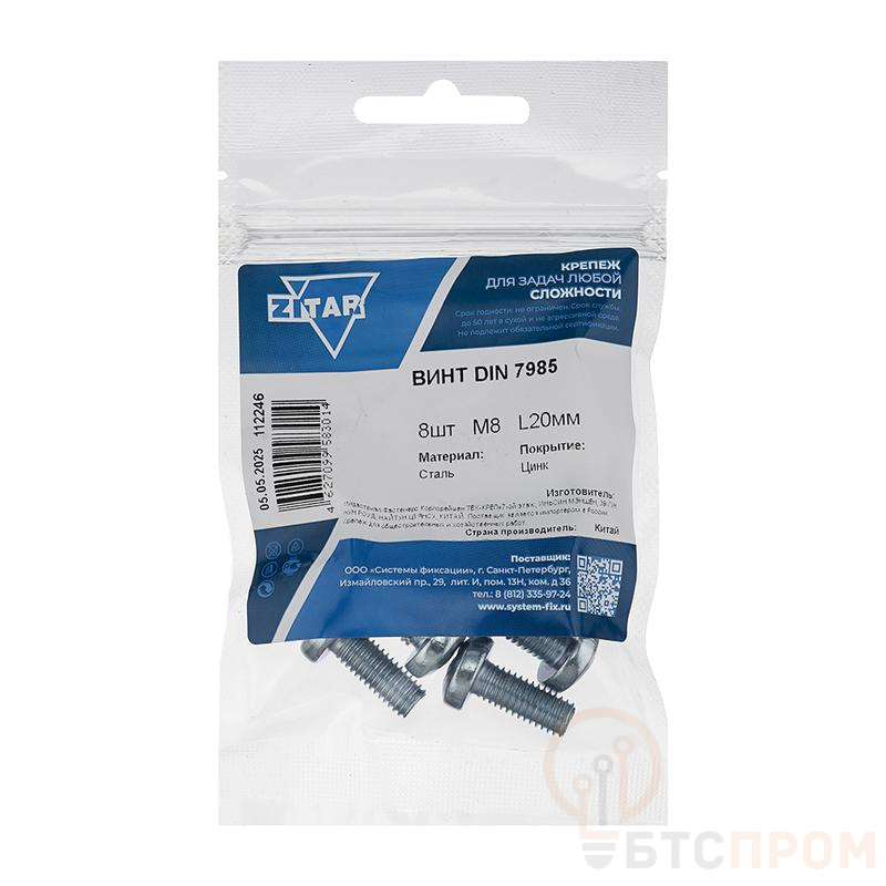 Винт с полукруглой головкой М8х20 DIN 7985 оцинк. (уп.8шт) Tech-Krep/Zitar 112246 фото в каталоге от BTSprom.by
