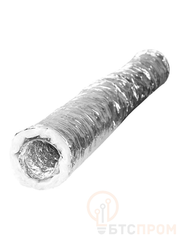 Гибкие теплоизолированные воздуховоды Максимальная длина в растянутом состоянии — 10 м. Шаг проволоки: 48 мм. Толщина: 70 мкм. Материал: металлизированная пленка со спиральным каркасом из стальной проволоки, утеплитель. Предназначен для сведения к минимальной потери тепла и холода. Рабочая температура: -30°С до + 90°С. Имеет слой теплоизоляции толщиной 25 мм.