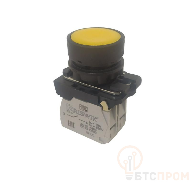 Выключатель кнопочный КМЕ-4110м-Л 24В толкатель цилиндрический с индикацией 1з+0р 10А IP40 диаметр посадочного отверстия 22мм УХЛ3 желт. Реле и Автоматика A8012-32100055