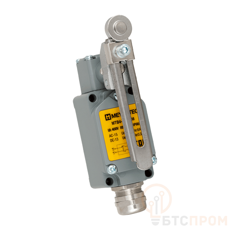 Выключатель концевой MTB4-HD5108 от ОВЕН — надежный и долговечный датчик позиционирования для промышленных систем автоматизации. Модель оснащена стальным поворотным регулируемым роликом, что позволяет точно настраивать момент срабатывания. Корпус имеет степень защиты IP66, обеспечивая полную защиту от пыли и мощных водяных струй, что делает устройство устойчивым к тяжелым условиям эксплуатации.