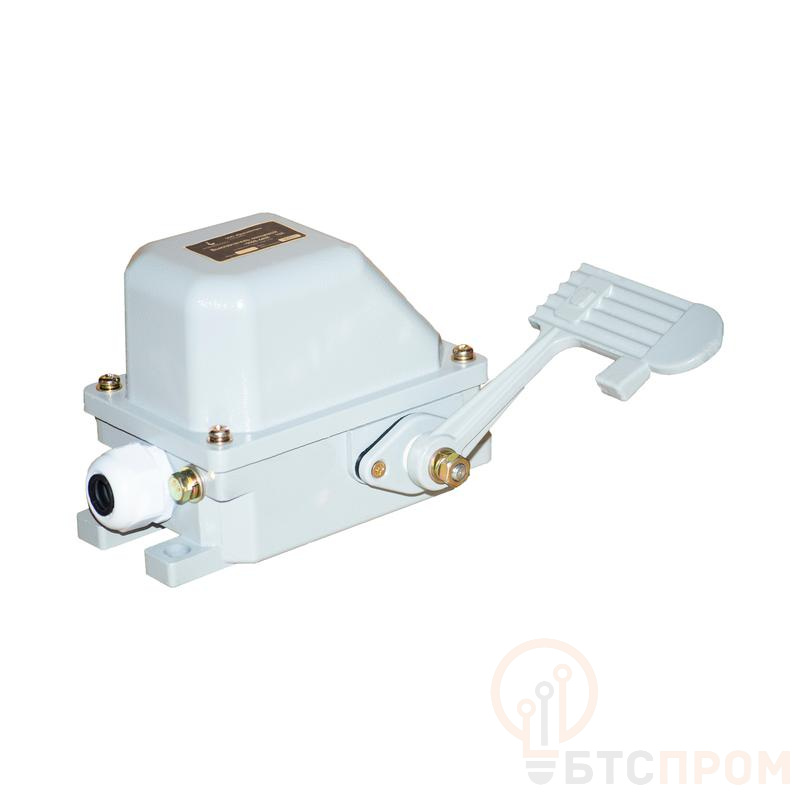 Выключатель концевой ножной НВ-701 У1 от производителя «Кранэлектро» — надежный аппарат управления, предназначенный для коммутации электрических цепей управления и сигнализации в стационарных установках. Устройство срабатывает при нажатии на педаль (плунжер), что обеспечивает удобное и безопасное дистанционное управление без использования рук.