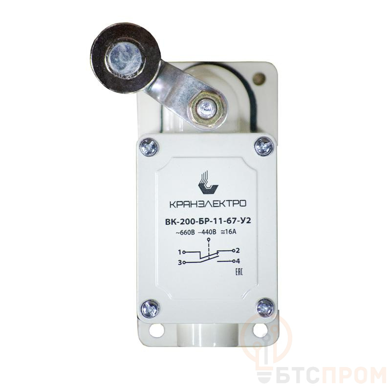 Выключатель концевой ВК-200-БР-11-67 У2 от производителя «Кранэлектро» — надежный аппарат управления, предназначенный для коммутации электрических цепей управления в зависимости от положения механизмов. Корпус устройства выполнен из прочного бронзированного сплава (БР), что обеспечивает устойчивость к механическим воздействиям и коррозии.