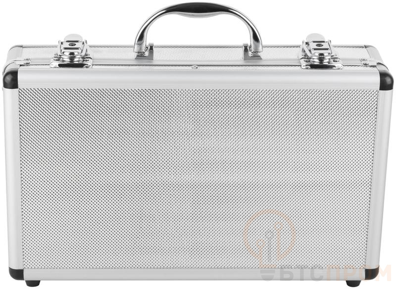 14" (355 ? 210 ? 90 мм). Алюминиевый. Внутренние перегородки – переставные. Отделка из мягкого пористого материала для обеспечения более бережного хранения инструмента. • Внутренняя отделка из мягкого пористого материала снижает вероятность повреждения инструмента. • Переставные перегородки позволяют оптимально организовать пространство внутри ящика и препят ствуют смещению инструментов при транспортировке. • Ящик надежно закрывается с помощью металлических замков с ключом (ключи входят в комплект поставки). • Эргономичная пластиковая рукоятка обеспечивает удобный хват.