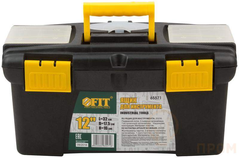 Пластиковый ящик для инструментов FIT РОС предназначен для хранения и транспортировки инструментов. Съемный лоток и два съемных и один встроенный органайзер в крышке дают возможность организованно хранить мелкий инструмент и крепеж. Рукоятка в крышке ящика повышает удобство при транспортировке. Ящик подойдет как профессионалу, так и домашнему мастеру: ящик позволяет держать инструменты и крепежные детали в одном месте и обеспечивает их сохранность.