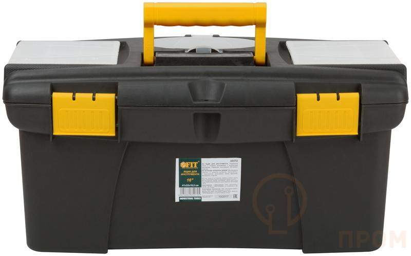 Пластиковый ящик для инструментов FIT РОС предназначен для хранения и транспортировки инструментов. Съемный лоток и два съемных и один встроенный органайзер в крышке дают возможность организованно хранить мелкий инструмент и крепеж. Рукоятка в крышке ящика повышает удобство при транспортировке. Ящик подойдет как профессионалу, так и домашнему мастеру: ящик позволяет держать инструменты и крепежные детали в одном месте и обеспечивает их сохранность.