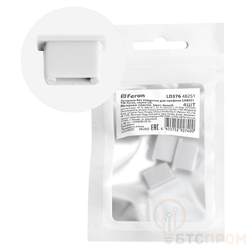 Заглушка для профиля FERON LD376 «без отверстия», цвет белый, в комплекте 4 шт, 14*5*9мм