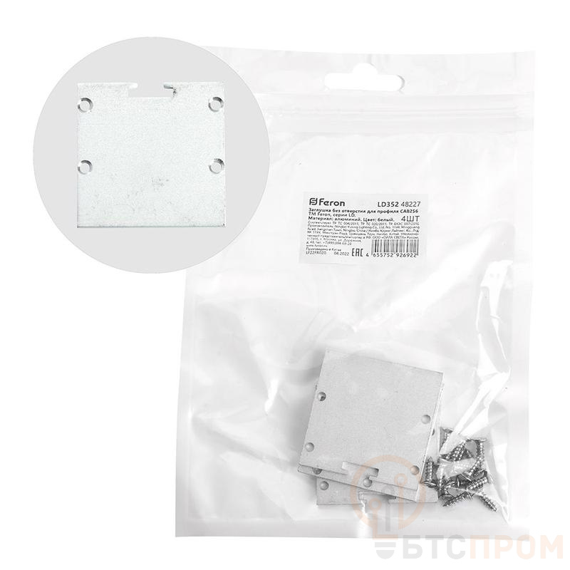 Заглушка для профиля FERON LD352 «без отверстия», цвет серебро, в комплекте 4 шт, 39*2*39мм