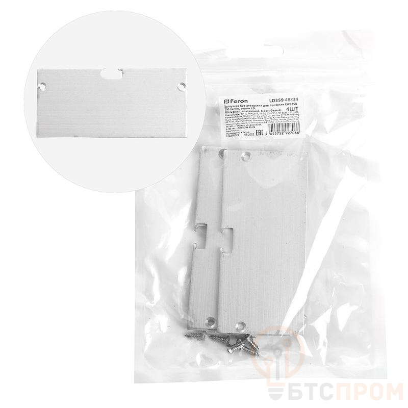 Заглушка для профиля FERON LD359 «без отверстия», цвет серебро, в комплекте 4 шт, 75*2*34мм