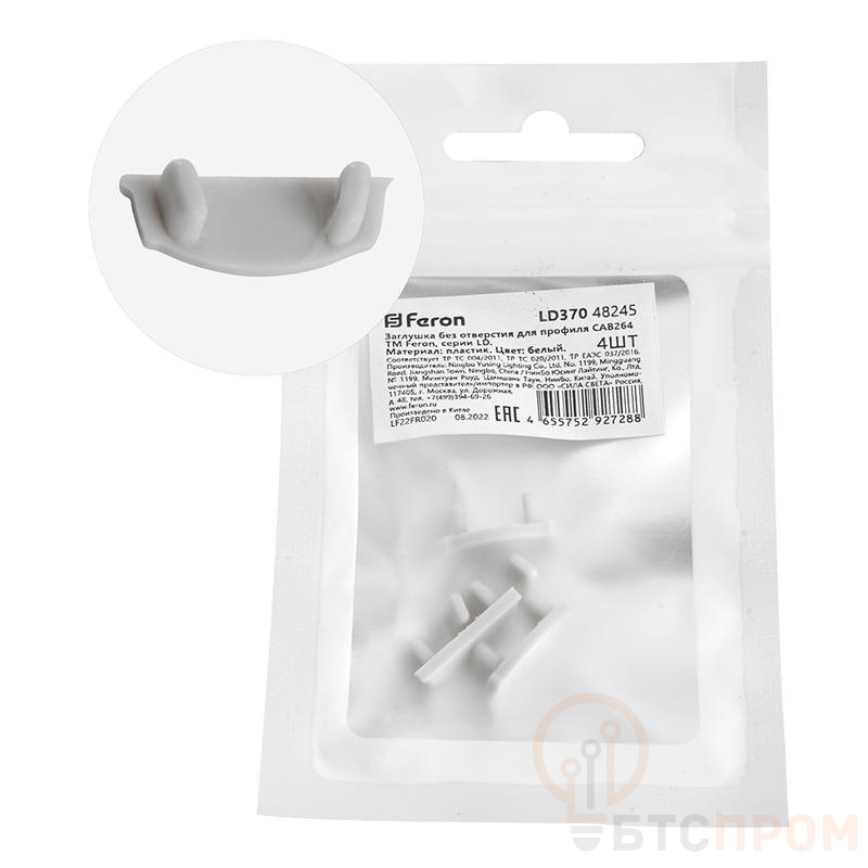 Заглушка без отверстия для профиля CAB264 LD370 (уп.4шт) FERON 48245 фото в каталоге от BTSprom.by