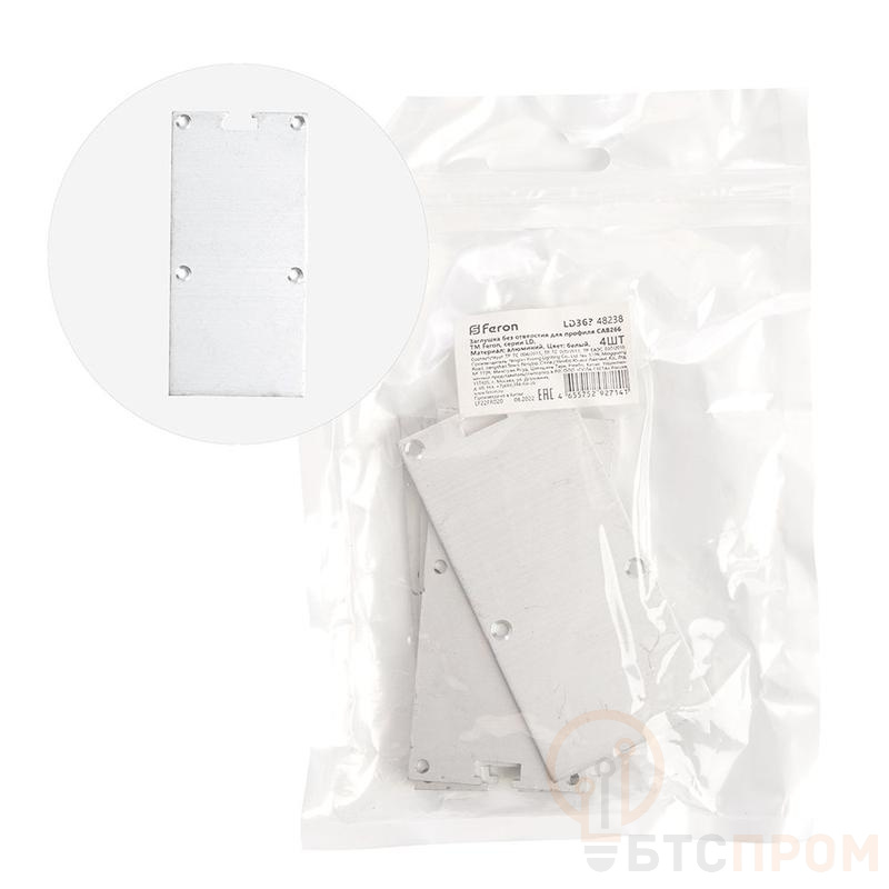 Заглушка для профиля FERON LD363 «без отверстия», цвет серебро, в комплекте 4 шт, 73*2*35мм