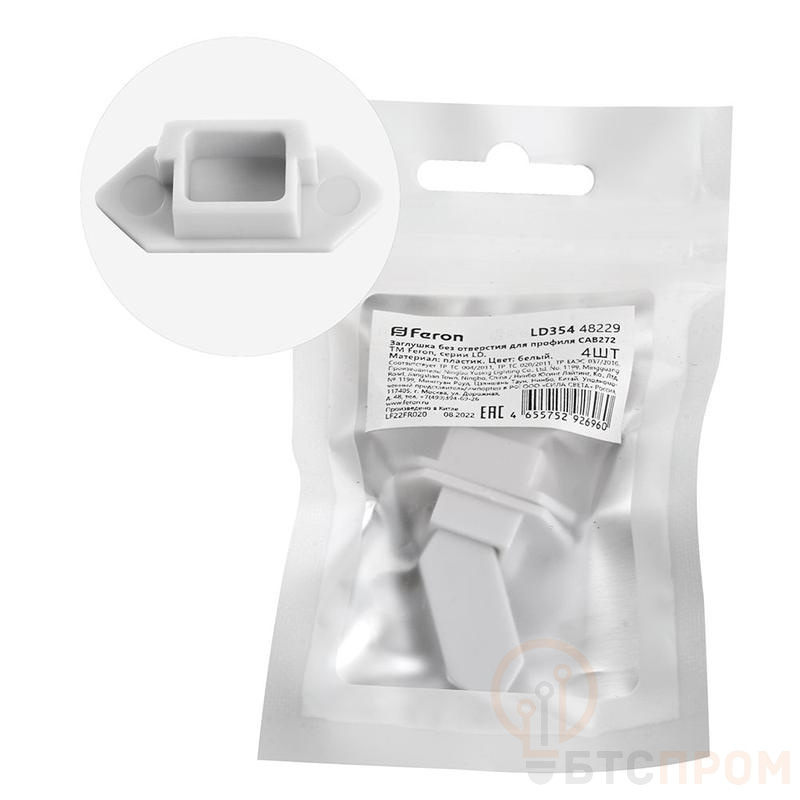 Заглушка для профиля FERON LD354 «без отверстия», цвет белый, в комплекте 4 шт, 26*7*10мм