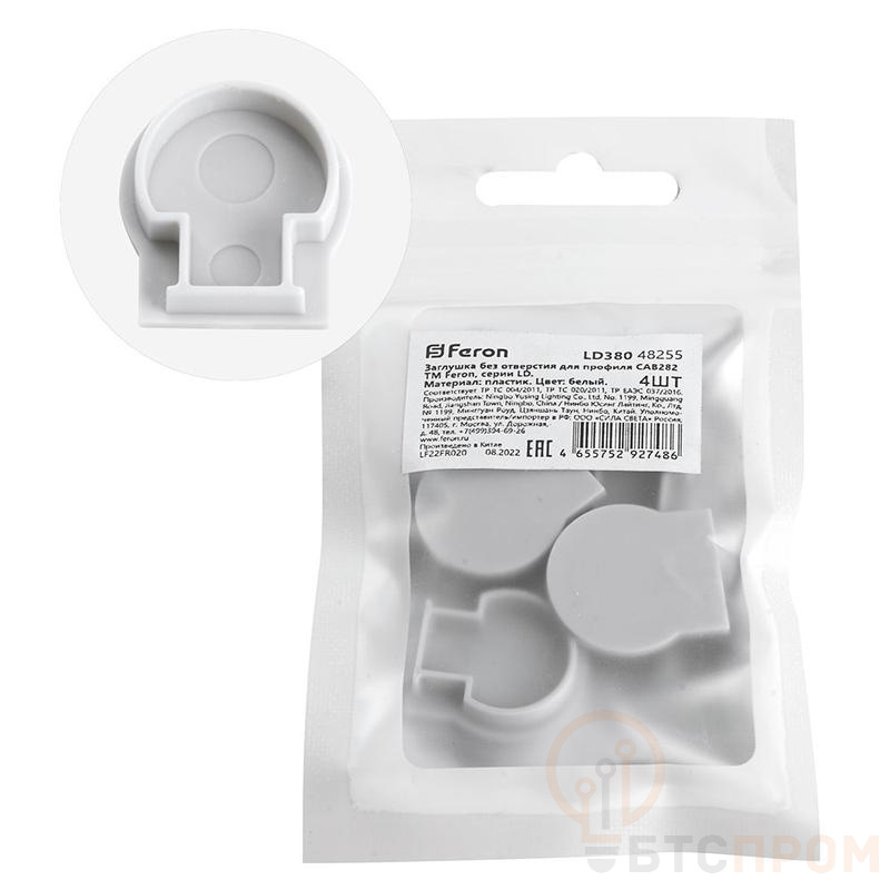 Заглушка для профиля FERON LD380 «без отверстия», цвет белый, в комплекте 4 шт, 15*5*20мм