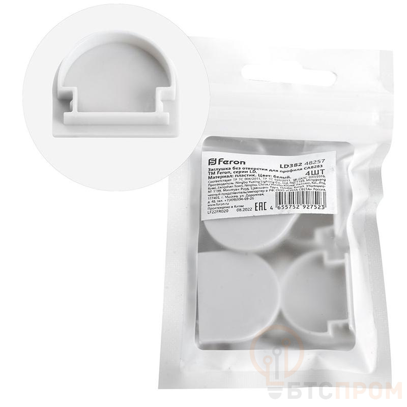 Заглушка без отверстия для профиля CAB283 LD382 (уп.4шт) FERON 48257 фото в каталоге от BTSprom.by