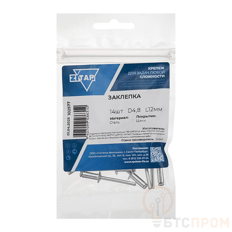 Заклепка 4.8х12 (уп.14шт) Tech-Krep/Zitar 102577 фото в каталоге от BTSprom.by