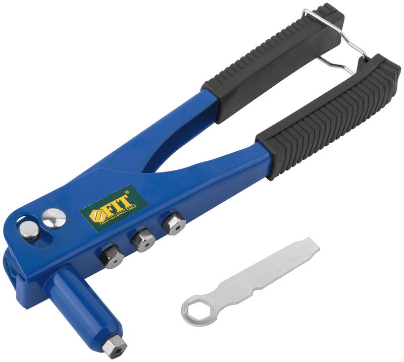 Заклепочник FIT DIY предназначен для создания соединений с помощью алюминиевых вытяжных заклепок. Заклёпочник имеет четыре быстросменные насадки и пружинный рычаг для выброса сердечника. Рукоятки оснащены эргономичными ПВХ-накладками, предотвращающими проскальзывание инструмента во время работы. Заклепочник предназначен для работы с заклепками 2,4; 3,2; 4,0; 4,8 мм.