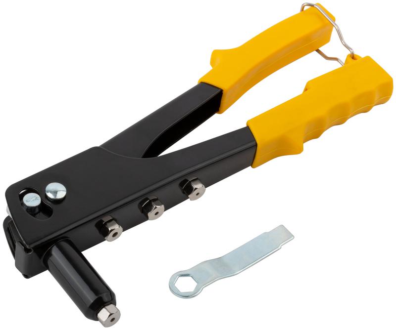 Заклепочник FIT DIY предназначен для создания соединений с помощью алюминиевых вытяжных заклепок. Заклёпочник имеет четыре быстросменные насадки и пружинный рычаг для выброса сердечника. Рукоятки оснащены эргономичными ПВХ-накладками, предотвращающими проскальзывание инструмента во время работы. Заклепочник предназначен для работы с заклепками 2,4; 3,2; 4,0; 4,8 мм.