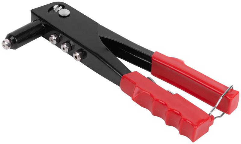 Заклепочник КУРС позволит вам проводить ремонтные и строительные работы с высокой точностью и качеством! Инструмент предназначен для создания соединений с помощью алюминиевых вытяжных заклепок. Заклепочник имеет четыре быстросменные насадки и пружинный рычаг для выброса сердечника. Рукоятки оснащены эргономичными ПВХ-накладками, предотвращающими проскальзывание инструмента во время работы. Заклепочник предназначен для работы с заклепками 2,4; 3,2; 4,0; 4,8 мм.