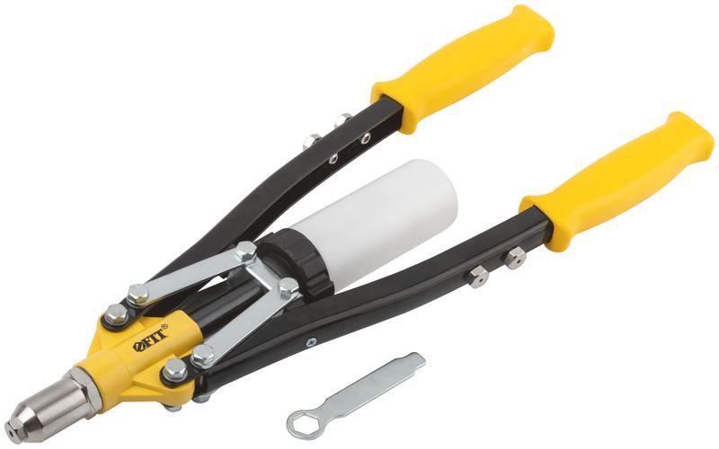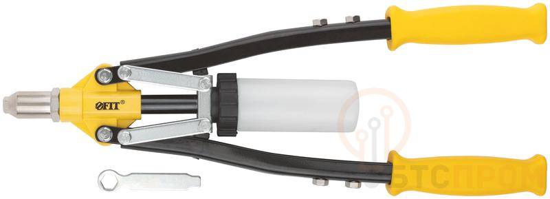 Заклепочник FIT IT с пластиковым контейнером для сбора отработанных сердечников заклепок предназначен для создания соединений с помощью алюминиевых вытяжных заклепок, а также заклепок из стали и нержавеющей стали. Литой корпус из алюминиевого сплава обладает высокой прочностью. Пластиковые рукоятки позволяют надежно удерживать инструмент в руках. Заклепочник предназначен для работы с заклепками 3,2; 4,0; 4,8; 6,0; 6,4 мм.