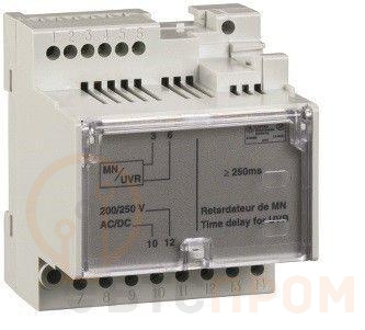 Расцепитель минимального напряжения MN вызывает мгновенное отключение выключателя SystemePact ACB, когда его напряжение питания падает до значения, составляющего от 35% до 70% номинального напряжения. Если расцепитель не запитан, включение (ручное или электрическое) выключателя невозможно. Повторное включение выключателя возможно, когда напряжение питания расцепителя достигнет 85% номинального значения