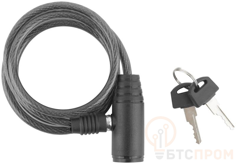 Материал: трос из инструментальной стали, оплетка из ПВХ, пластиковый корпус замка, сердечник из цинкового сплава. 2 ключа в комплекте. Упаковка: картонный подвес.