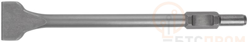 Широкое зубило для отбойного молотка FIT IT предназначено для штробления и разбивки бетона, камня и кирпича. Зубило изготовлено из легированной стали 40Cr с термообработкой, что обеспечивает высокое качество работ и долгий срок службы инструмента. За счёт твердости материала HRC 48–52 достигается высокая износоустойчивость оснастки.