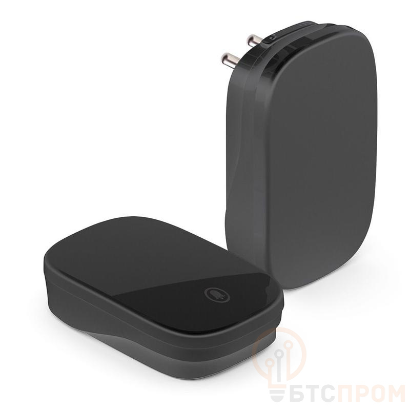 Звонок электрический беспроводной (клавиша и база в розетку) радиочастотный 433мГц черн. DB-380 FERON 48945