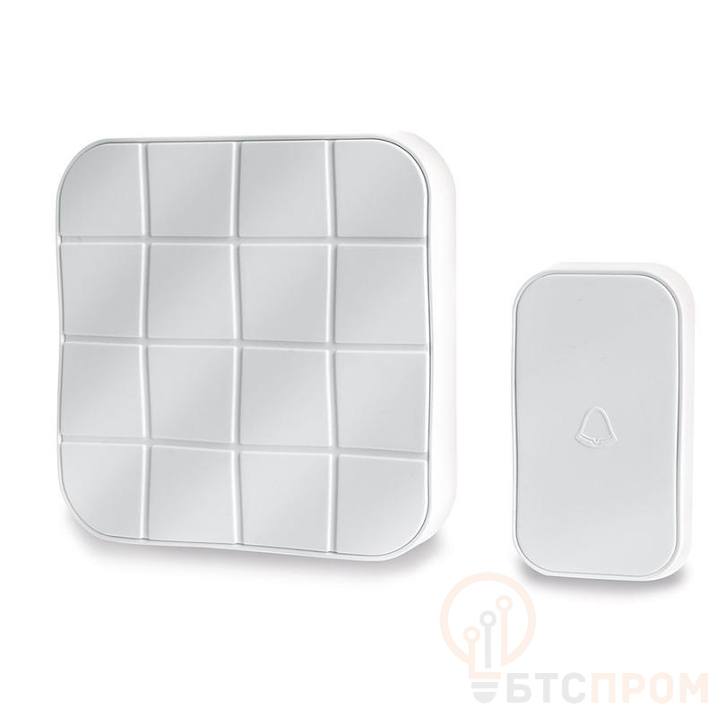 Звонок дверной беспроводной FERON E-378, 10 мелодий, дальность действия 100м, цвет белый, регулировка громкости - есть, шифрование сигнала - есть; 111*111*27 мм, КНОПКА: IP44, 1 * CR2032 (в комплекте) , раб.t -20..+60°С , размер кнопки 43*16*77мм