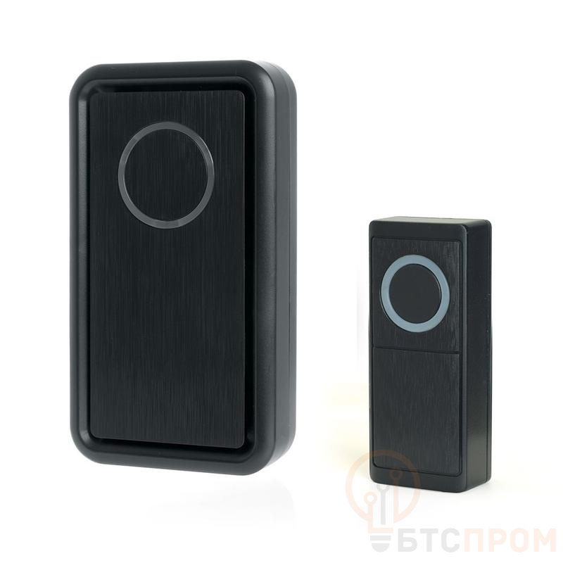 Звонок дверной беспроводной FERON E-379, 18 мелодий, дальность действия 100м, цвет черный, шифрование сигнала - есть; 123*70*23 мм, КНОПКА: IP44, 1 * CR2032 (в комплекте) , раб.t -20..+60°С , размер кнопки 38*22*92мм