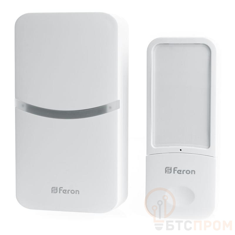 Звонок дверной беспроводной FERON DB-100, 18 мелодий, цвет белый, регулировка громкости - есть, шифрование сигнала - есть; 107*58*70 мм, КНОПКА: IP44, размер кнопки 37*22*94мм