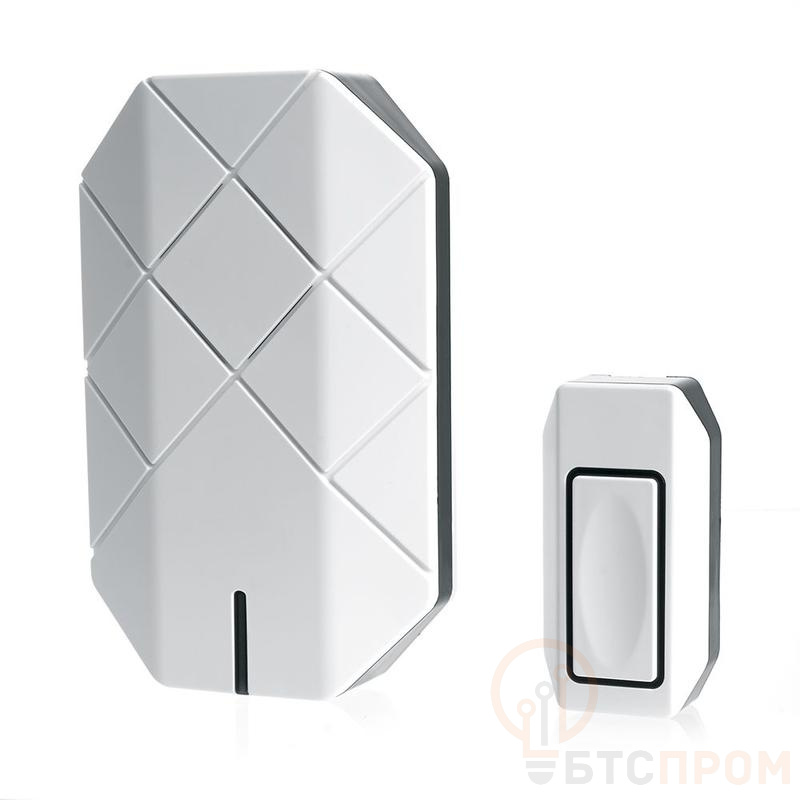 Звонок дверной беспроводной FERON E-377, 30 мелодий, дальность действия 100м, цвет белый, регулировка громкости - есть, шифрование сигнала - есть; 131*84*29 мм, КНОПКА: IP44, 1 * CR2032 (в комплекте) , раб.t -20..+60°С , размер кнопки 34*19*67мм