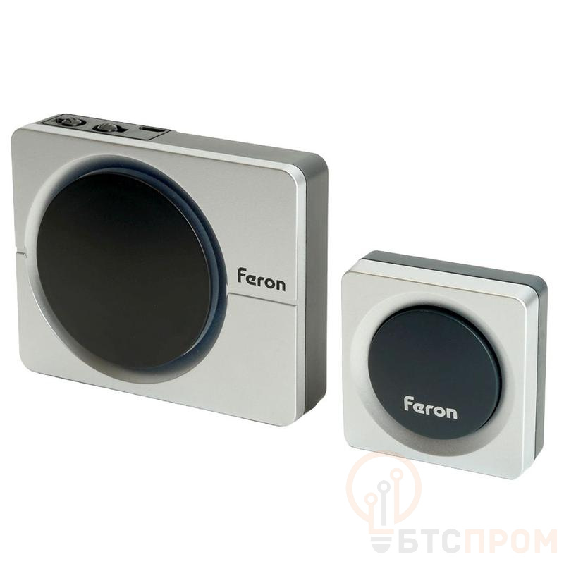 Звонок дверной беспроводной FERON E-382, 38 мелодий, дальность действия 100м, цвет серебро/черный, регулировка громкости - есть, шифрование сигнала - есть; 94*76*22 мм, КНОПКА: IP44, 12V 23A*1 (в комплекте) , раб.t -20..+60°С , размер кнопки 54*54*19мм