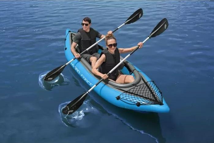 Поднимите свое летнее настроение на новый уровень и наслаждайтесь бесконечными часами на озере, реке или море с помощью комплекта для каяков "Cove Champion х2". Этот набор включает в себя все необходимое для вашего отдыха. Каяк можно легко и быстро накачать с помощью ручного насоса. Наш проверенный временем материал придает каяку исключительную прочность, улучшает сцепление с водой и предотвращает чрезмерное растяжение. В комфортабельном каяке есть два регулируемых надувных сиденья со спинками для дополнительной поддержки. Кроме того, благодаря эластичной ленте и сетке в этом каяке достаточно места для хранения закусок или дополнительного снаряжения. Благодаря двум съемным плавникам на каяке легко перемещаться. В зависимости от условий, в которых вы находитесь, вы можете изменить размер плавника в соответствии со своими потребностями. Транспортировка этого каяка очень проста благодаря привязным тросам. Характеристики · Размер надутый: 331 х 88 х 45 см · Максимальная грузоподъемность: 180 кг · Изготовлен из прочного на разрыв материала · 3 Воздушные камеры · Для 2 человек · Сертифицировано по стандарту GS · 2 съемных ребра · Привязные тросы к носу + корме · Удобная кабина с 2 надувными сиденьями · Твердый, надувной пол · Эластичная лента на носу + корме для дополнительного хранения · Быстроразъемные клапаны · Сливной клапан Комплектация · 1 пара алюминиевых весел 230 см #62174 · Ручной насос #62003 · Сумка · Заплатка для ремонта · Цветная коробка