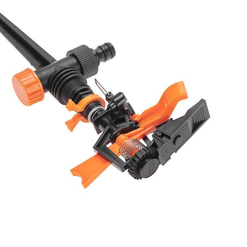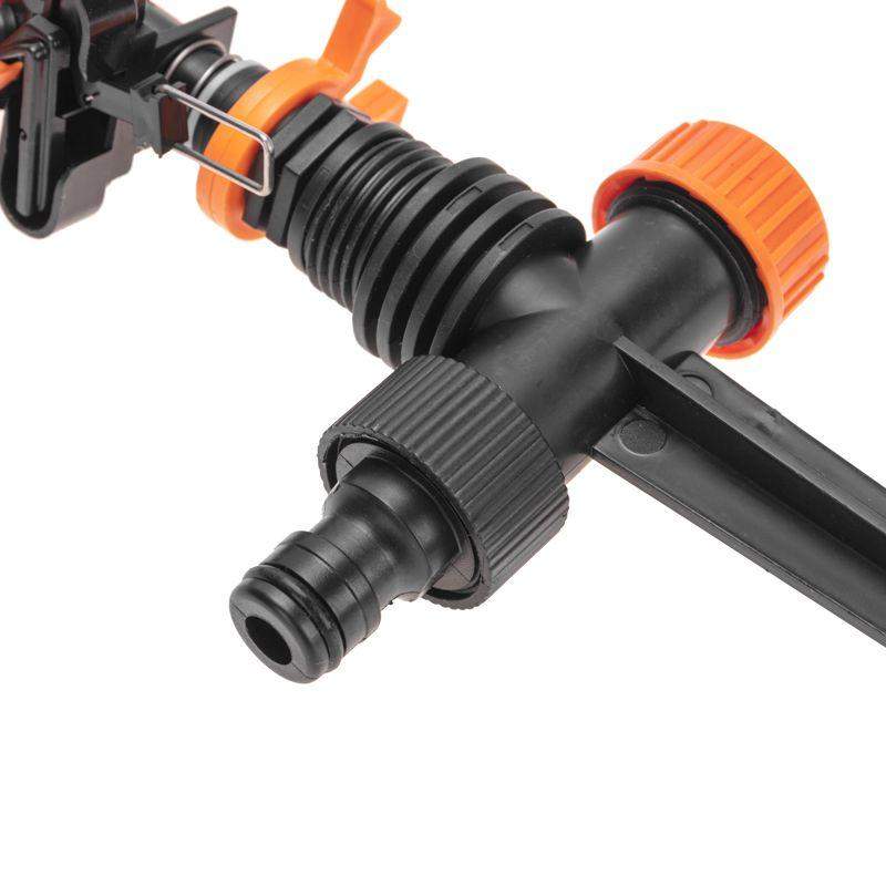 Импульсный дождеватель предназначен для полива растений и почвы. Площадь орошения составляет 254 м2. Конструкция основана на принципе импульсного распределения воды, что позволяет создавать мощные и длинные струи воды, обеспечивая равномерный полив даже на больших площадях. Система установки в грунт обеспечивает надежную фиксацию изделия. Герметичное крепление шланга к дождевателю осуществляется при помощи универсального соединителя, расположенного на корпусе устройства. Дождеватель изготовлен из качественного и прочного пластика, устойчивого к воздействию внешних факторов.