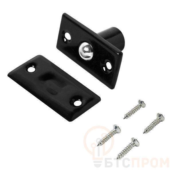 Фиксатор дверной с шариком. Предназначен для запирания межкомнатных дверей (алюминиевых, деревянных, из МДФ и ПВХ). Защелка не запирает, а защелкивает полотно, тем самым удерживая его в дверном проеме. Материал - ЦАМ, гальваническое покрытие. Габариты торцевой планки - 47х25 мм. В комплекте шурупы и ответная планка.