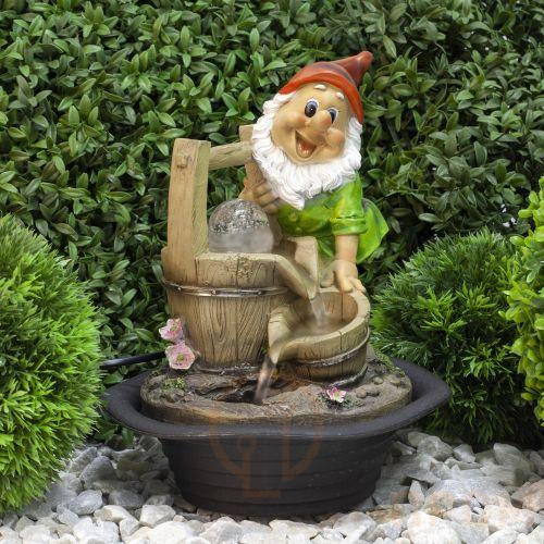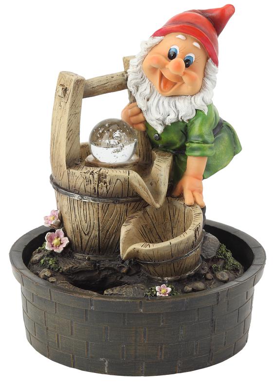 Если в собственном доме или квартире вы желаете обустроить уютный уголок, где так приятно отдохнуть после тяжелых трудовых часов, обратите внимание на настольный фонтан. Созерцание потока воды с нежным журчанием производит ощутимый релаксационный эффект, успокаивая и расслабляя. Фонтан имеет замкнутую систему - подливайте воду по мере испарения. Тщательно проработаны детали - фигурку хочется рассматривать. Этот декоративный садовый гном Хозяин сделает пейзаж сада интереснее. Разместите его у клумбы, около входа в дом или в беседке.
